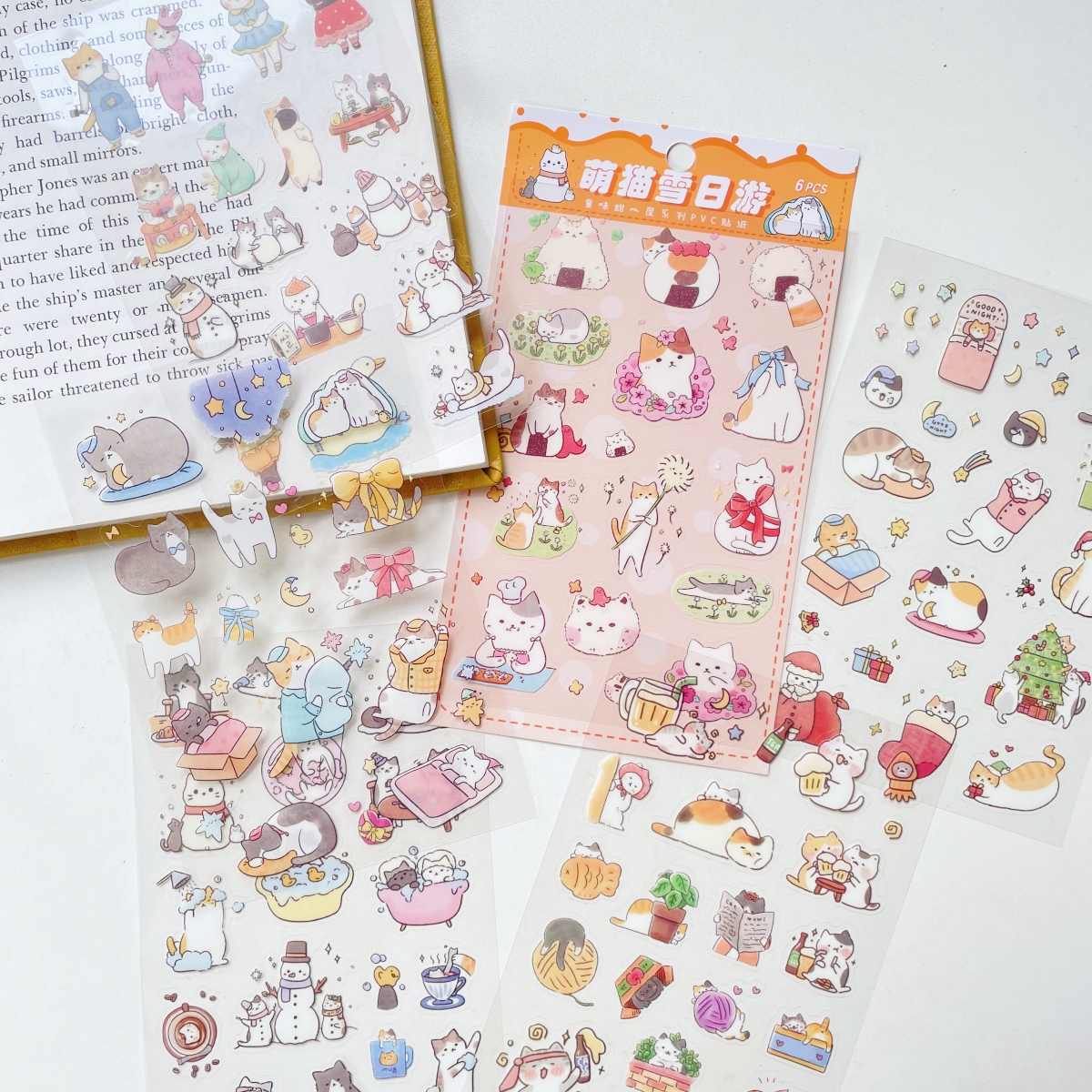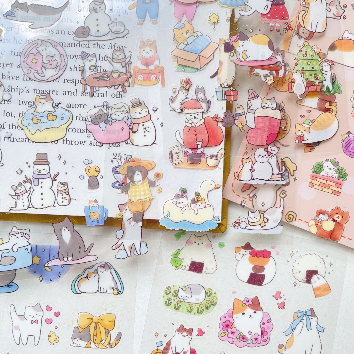 猫部杂货萌猫卡通可爱透明防水pvc贴纸diy手账日记素材贴水杯贴纸