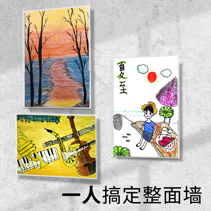 亚克力悬浮照片墙a4儿童简易画装裱画框相框展示框免打孔幼儿园小学美术作品书法展示墙奖状收纳挂墙框架墙贴