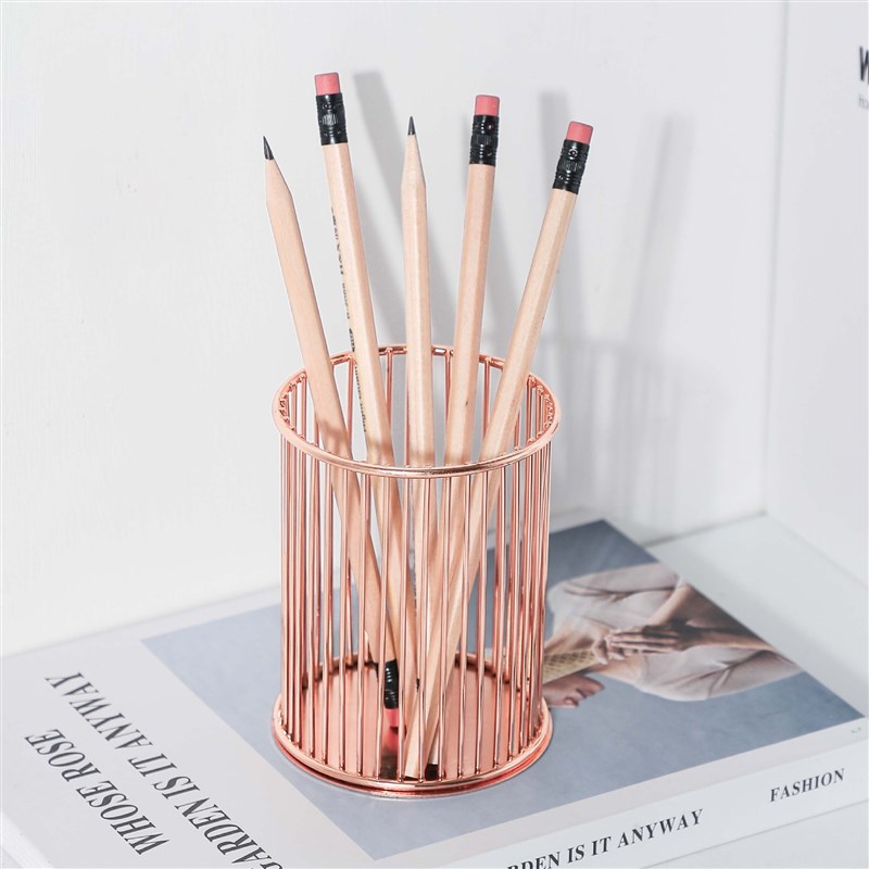 速发玫瑰金 金属笔筒直线电镀化妆刷收纳筒办公桌面收纳