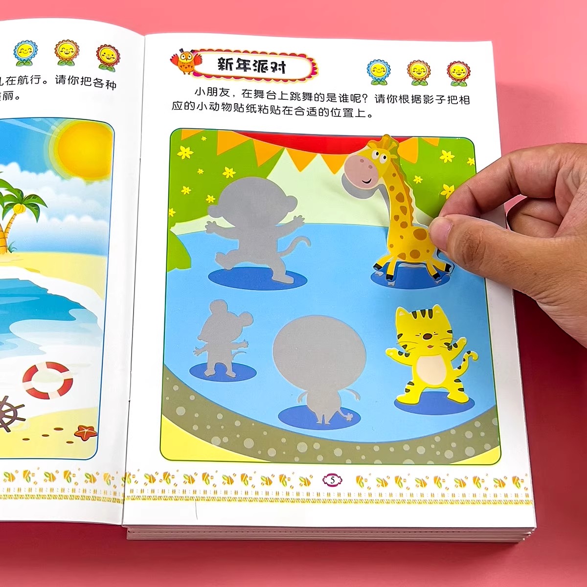 儿童全脑开发贴贴画专注力训练贴纸书益智玩具2-3-5-6岁4男女孩贴贴纸幼儿园宝宝换装/汽车/恐龙/蒙氏数学/童话故事贴画书早教启蒙