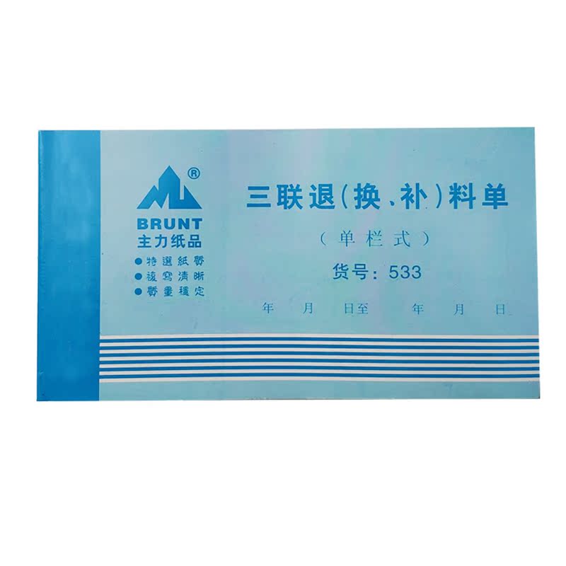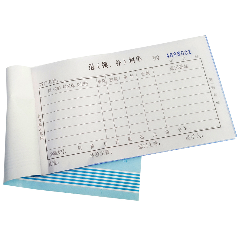 材料退换证明单据三联换货财务登记证明清单退补收据材料产物出单