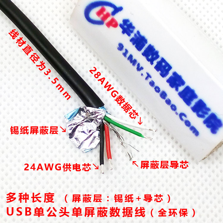 全环保USB单头数据线材单公头单母头4芯带屏蔽锡纸多种规格可选择