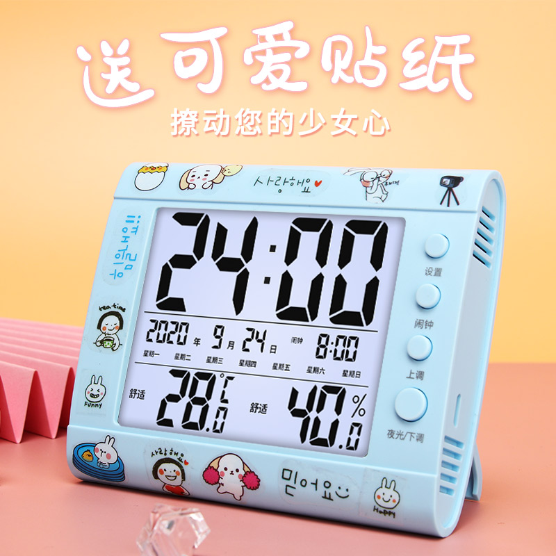 室内温度计计家用电子温湿度干湿显E示器时钟闹钟温度表精准婴儿
