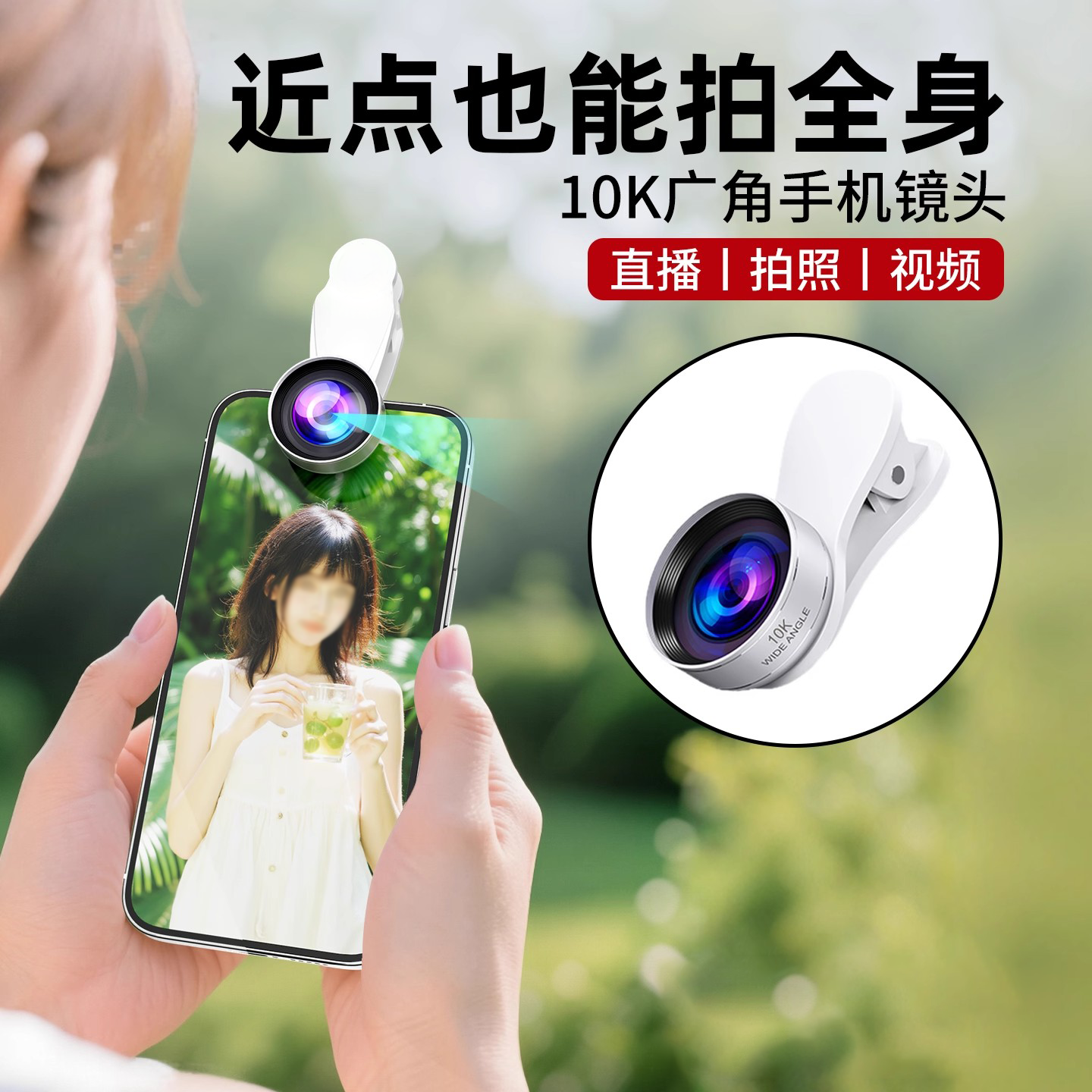 10K广角镜头直播通用手机超清玻璃专业拍摄外置自拍照摄影头抗畸变2025新款自拍辅助神器适用于苹果13pro华为
