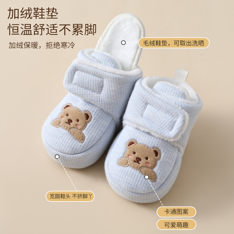 婧麒婴儿鞋子秋冬加绒加厚宝宝步前鞋0-12月新生儿布鞋保暖不掉鞋