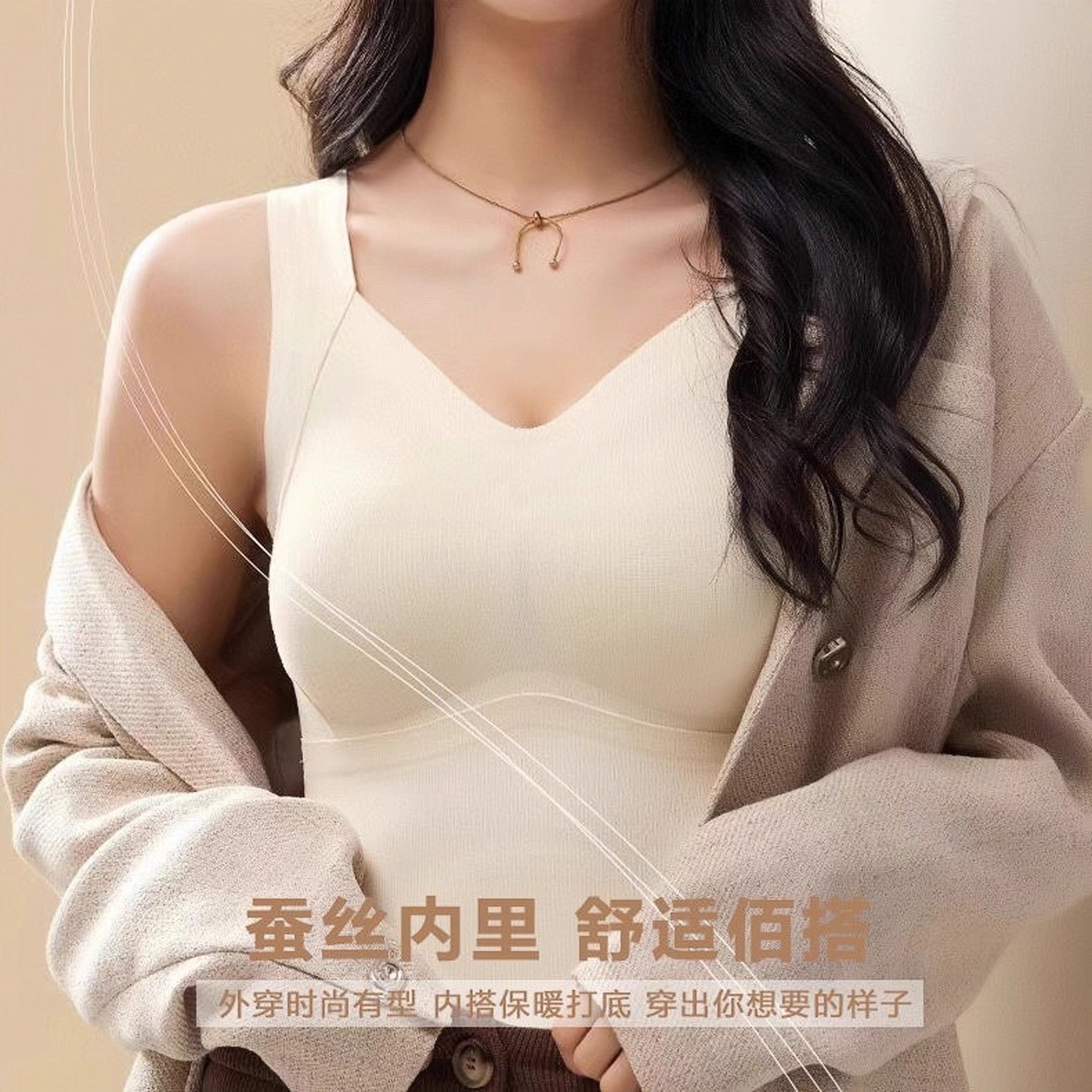 蚕丝德绒发热背心女秋冬无痕内搭吊带加绒加厚保暖内穿贴身打底衫