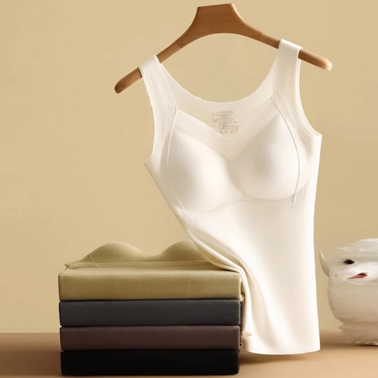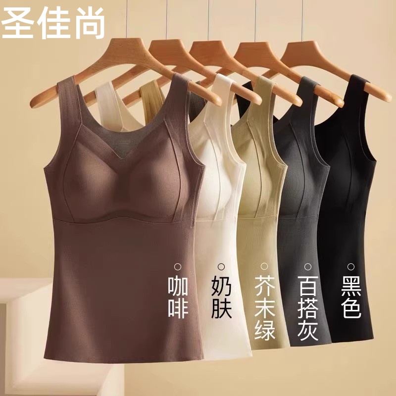 蕉轩德绒无痕保暖背心女款带胸垫免穿文胸加绒加厚打底上衣秋冬季