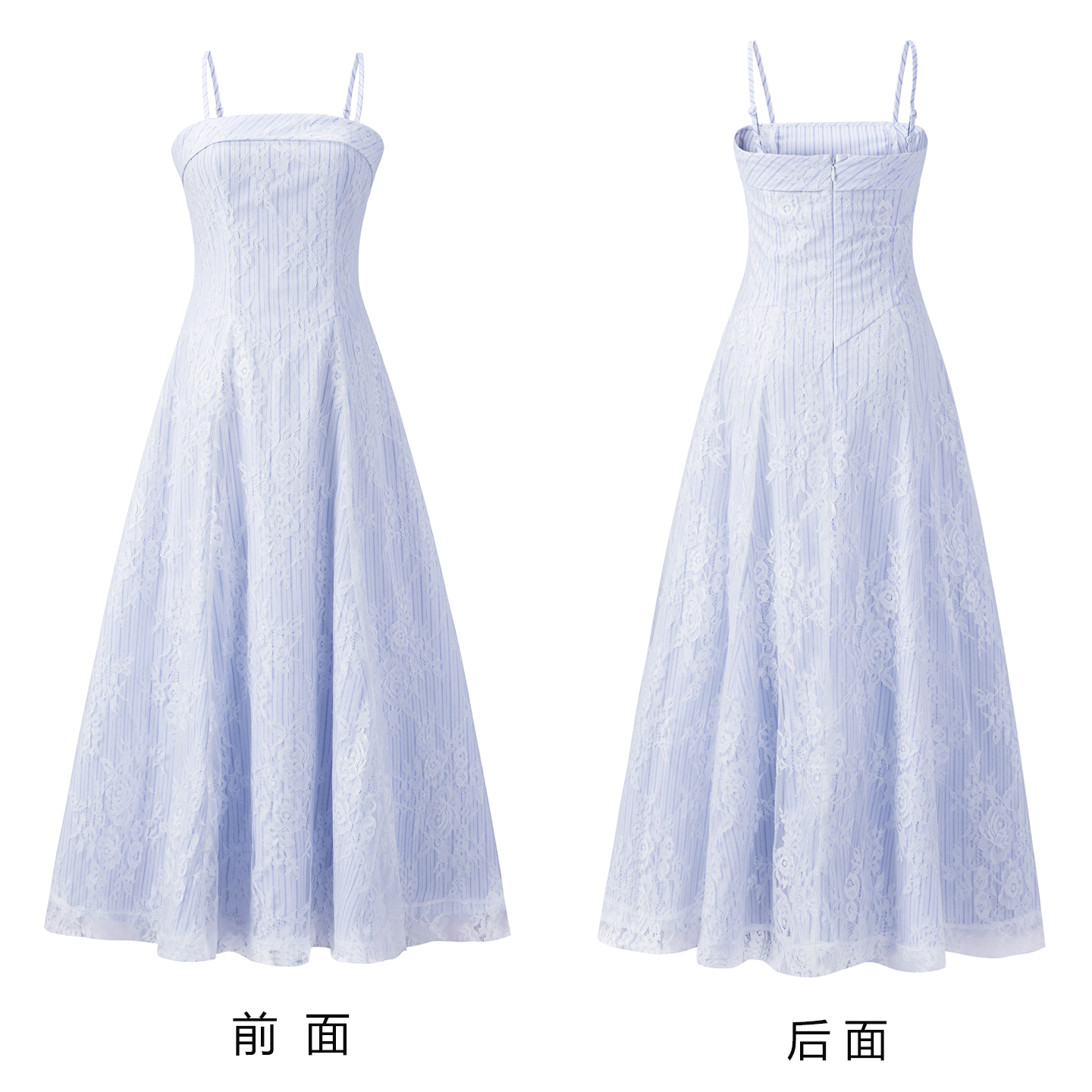 你好星期六白鹿同款蓝色吊带裙露背礼服连衣裙独特漂亮蕾丝裙夏潮