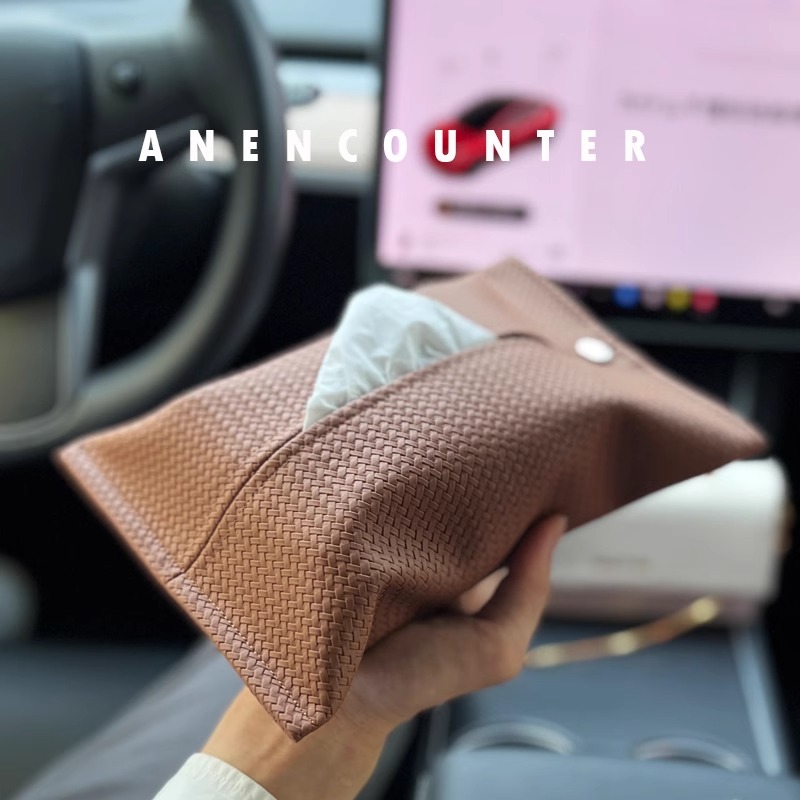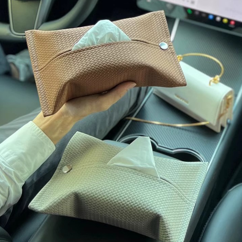 茶几糖果车用纸巾盒轻奢风编织车载款客厅华夫格黑白色抽巾盒套