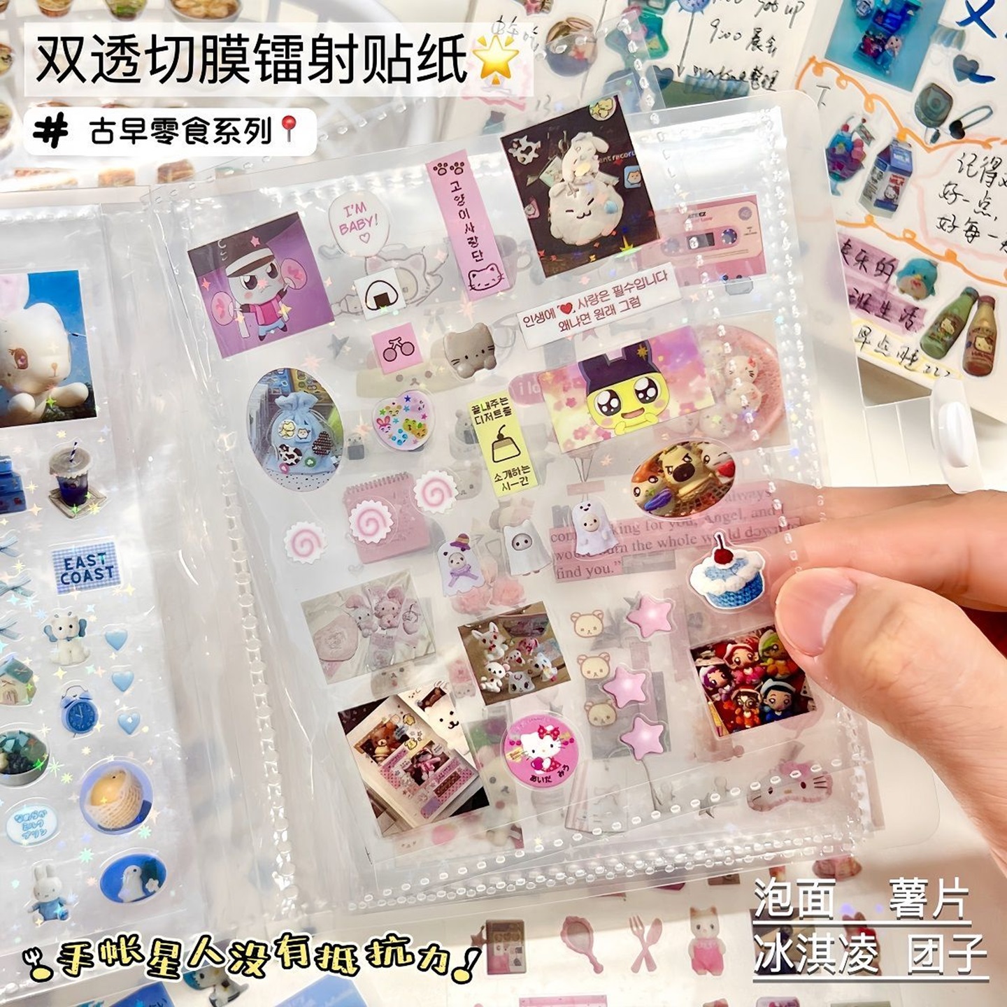 日系高颜值可爱零食切膜贴纸古早双透镭射手账diy装饰卡通素材