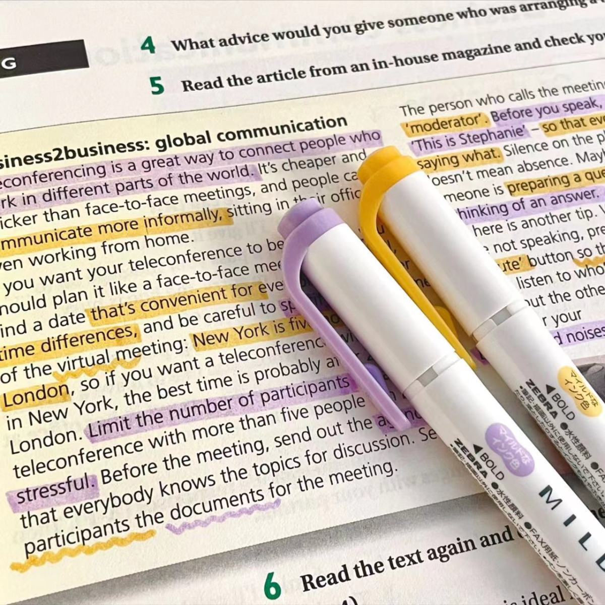 【第一卫】日本ZEBRA斑马荧光笔双头笔WKT7学生标记笔重点不晕染手账淡色系MILDliner彩色手帐标记笔记号笔