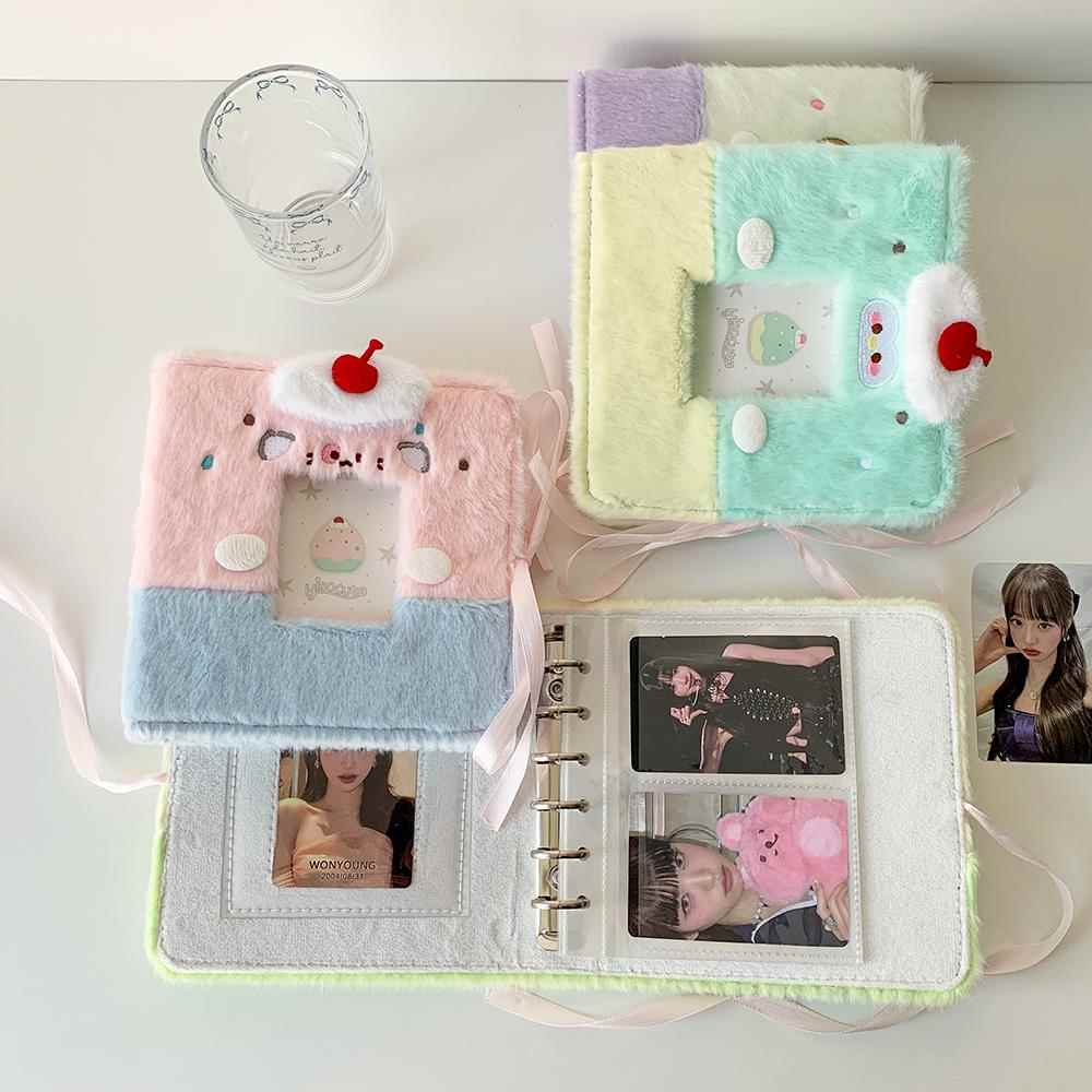 ins少女二宫格3寸毛绒卡册学生A7镂空追星相册拍得立小卡收纳册