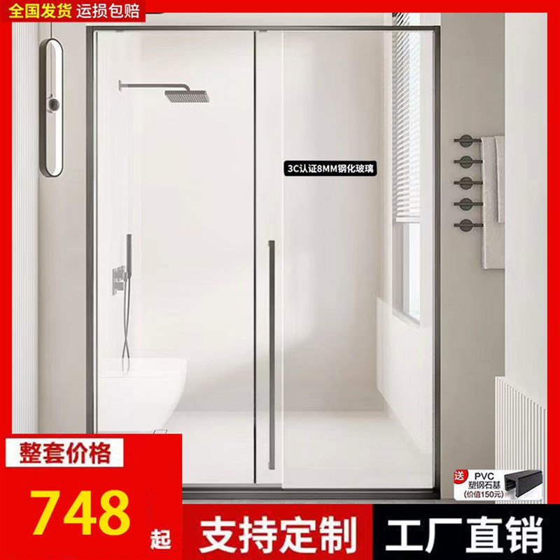 极窄淋浴房一字形卫生间洗澡干湿分离隔断玻璃门推拉移门极简浴屏