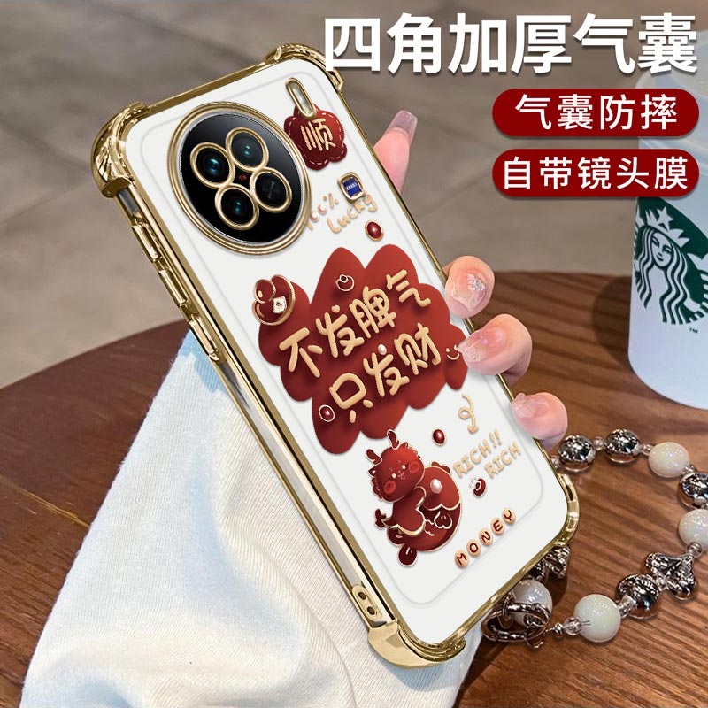 适用VIVOX90手机壳发财金蛇电镀四角防摔vivoX90Pro简约硅胶气囊全包X90PRO+高颜值手链女款保护套