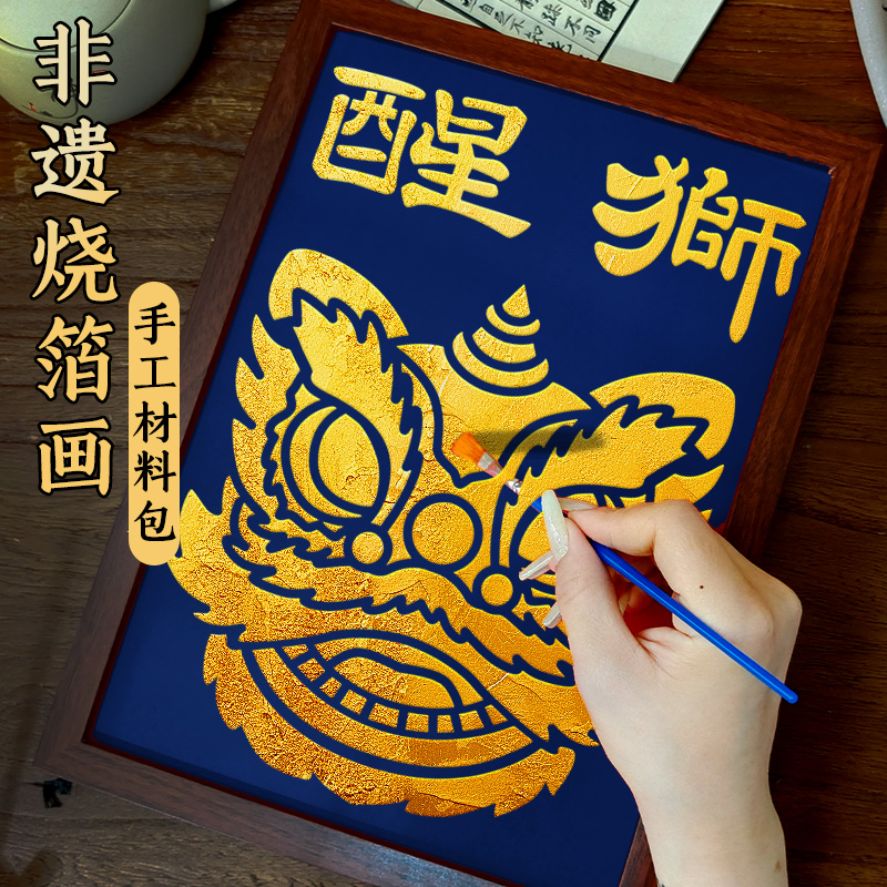 非遗烧箔画diy材料包金箔画装饰拓印传承手工爱国主题礼物重阳节