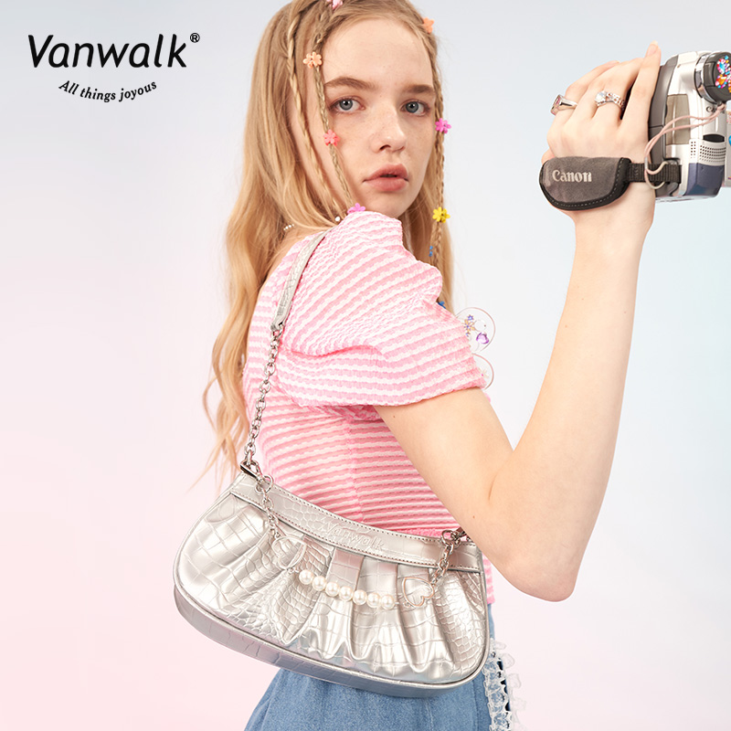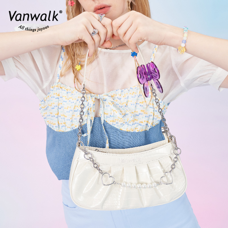VANWALK秘密花园 原创复古高级感少女单肩包奶油系甜辣褶皱腋下包