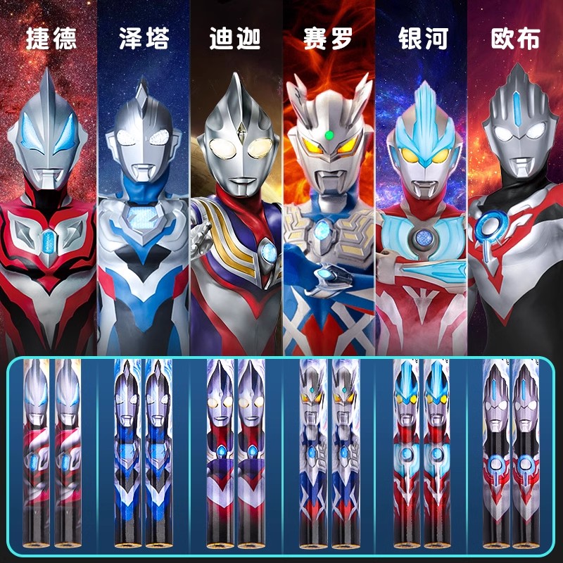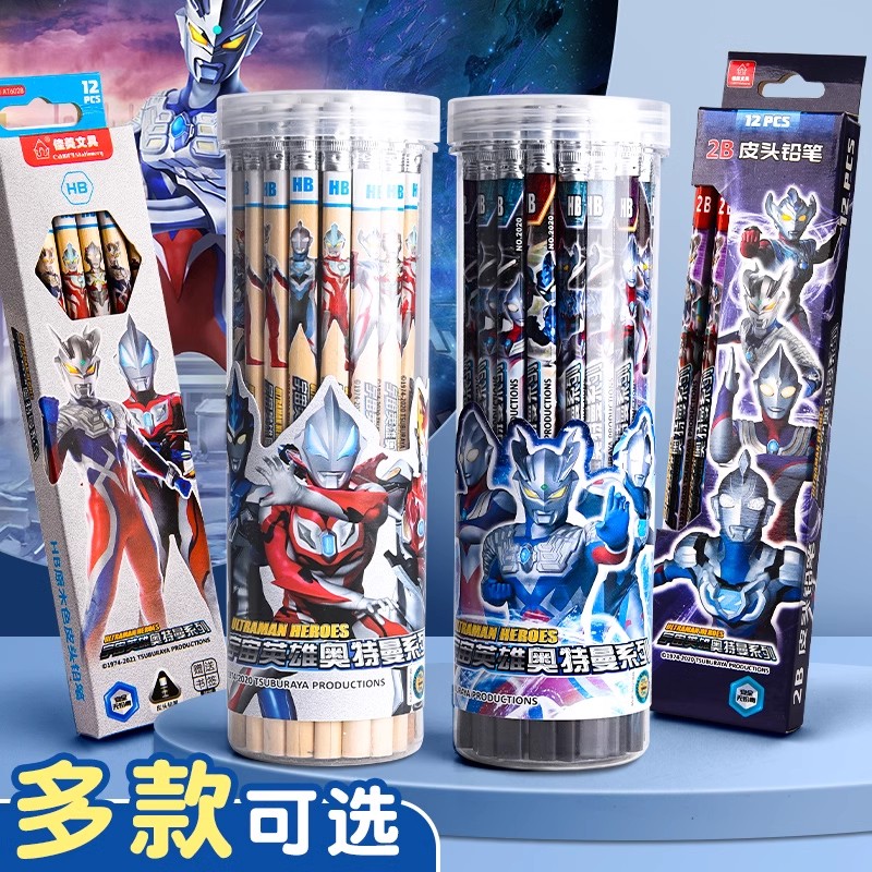 奥特曼铅笔小学生专用一二年级2b带橡皮擦头男孩三角杆hb铅笔幼儿园学生初学者2比儿童卡通文具套装学习用品