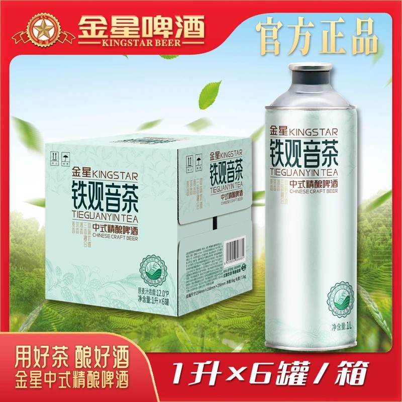 金星多口味毛尖茶啤酒1L*6罐高端精酿绿豆/茉莉花茶/陈皮整箱