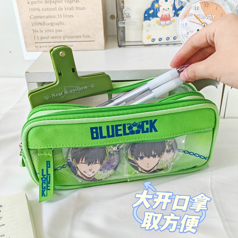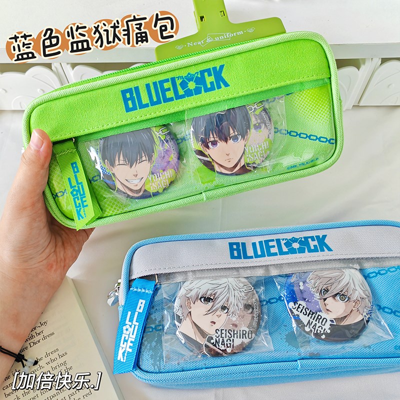 速发蓝色监狱大容量方形笔袋高颜值吧唧收纳袋二次元痛包袋文具盒