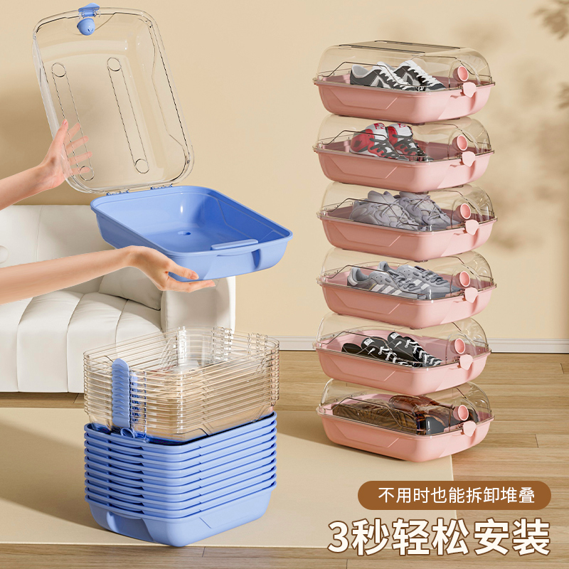 鞋盒家用门口宿舍鞋架透明收纳盒多层室内简易鞋柜省空间收纳神器