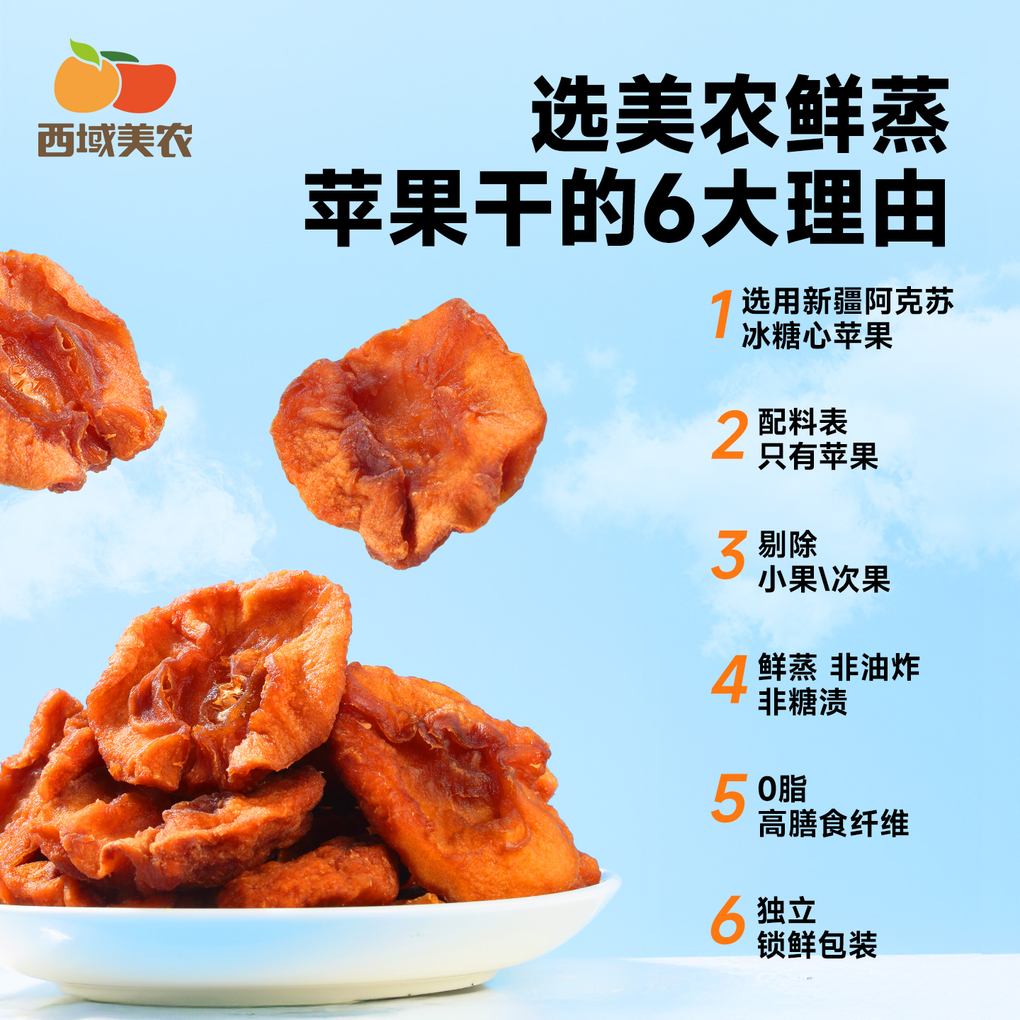【详情领金币下单再减10%】西域美农鲜蒸苹果干新疆阿克苏苹果干