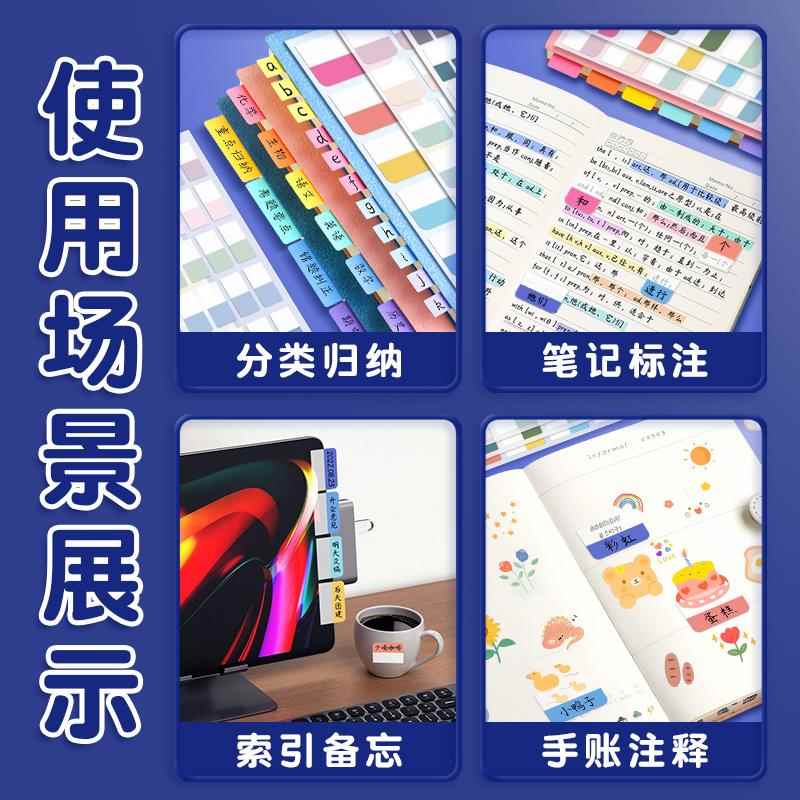 索引贴便签贴透明可书写纸质标签贴纸便利贴学生用莫兰迪分类指示书签记号引索贴小条标记小彩色荧光贴粘性强
