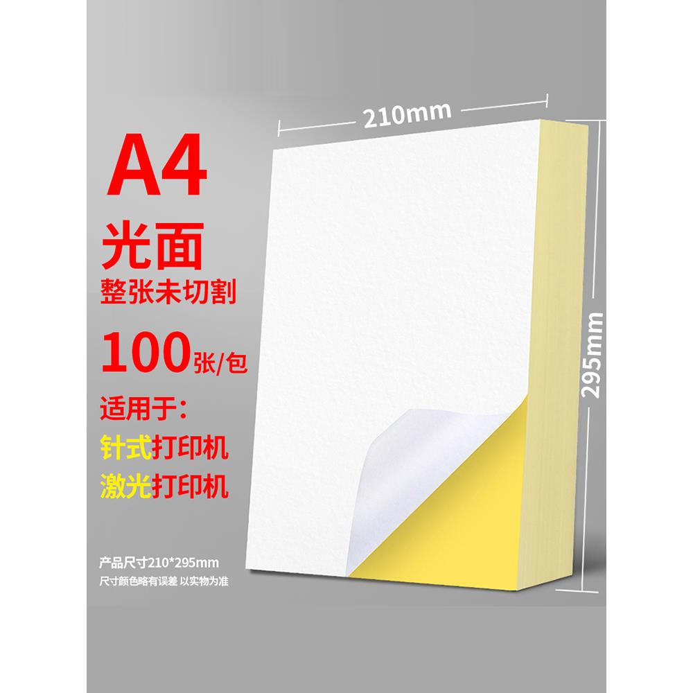 A4不干胶打印纸100张亮面内分切割打印贴纸背胶纸哑光不干胶标签贴纸自粘贴激光喷墨彩色铜版亚面光面可定制
