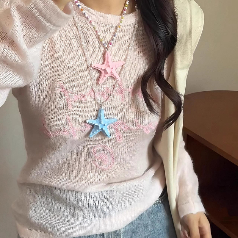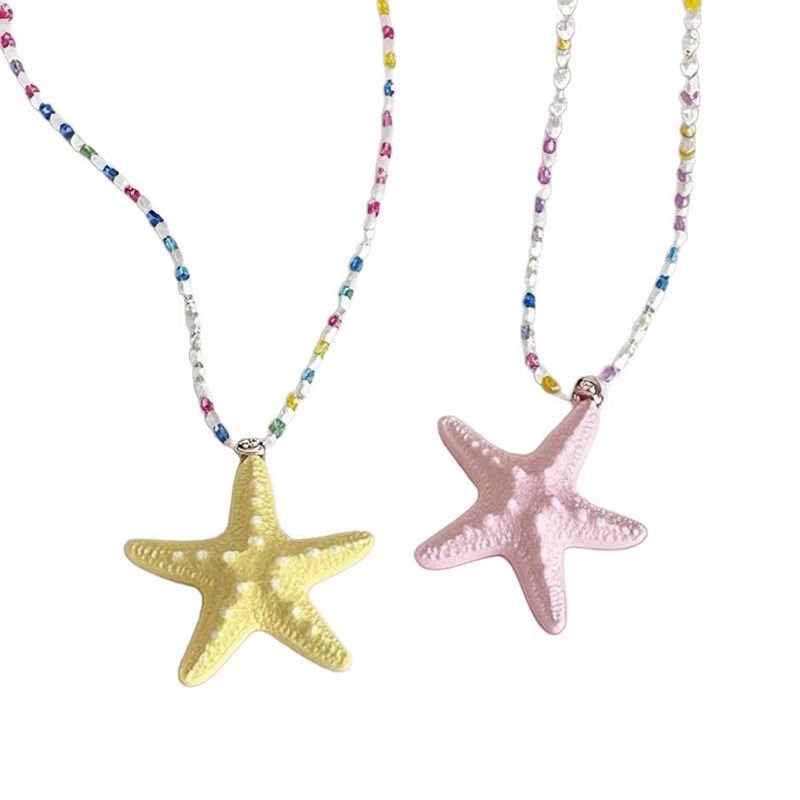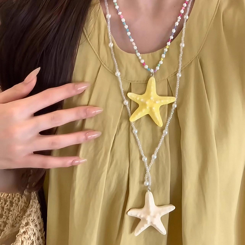 多巴胺长款串珠海星项链女夏天海边海岛度假风夸张黄色锁骨链配饰