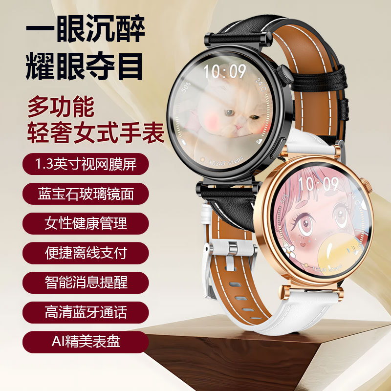 欧康胜女士智能手表离线支付消息提醒多功能运动心率蓝牙通话手环健康监测防水血压