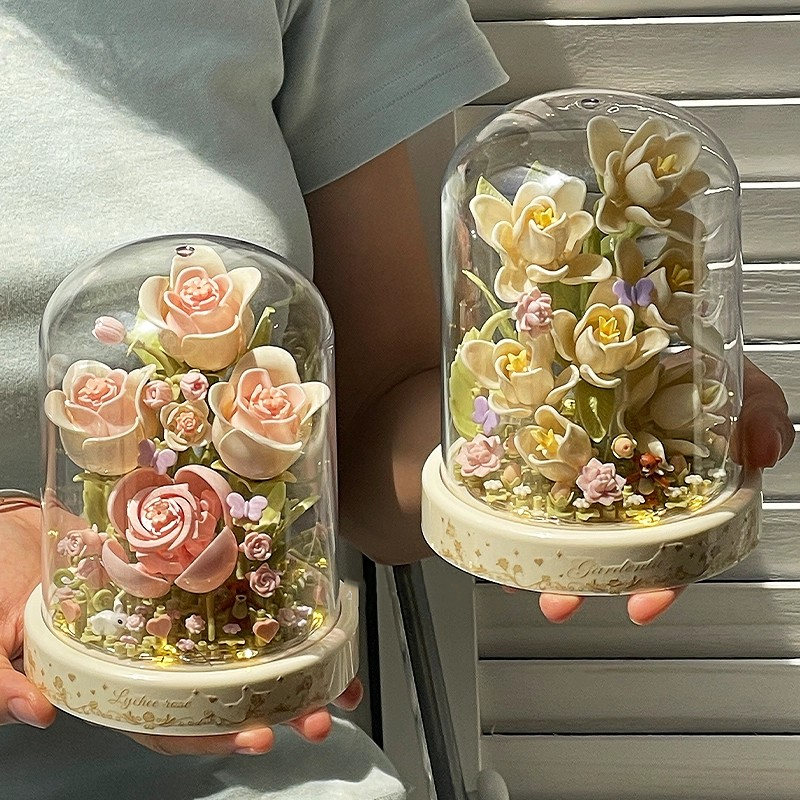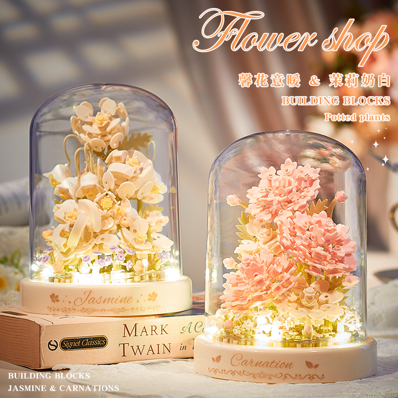 积木永生鲜花束盆栽拼装玩具高级感仙气手工diy送女友情人节礼物