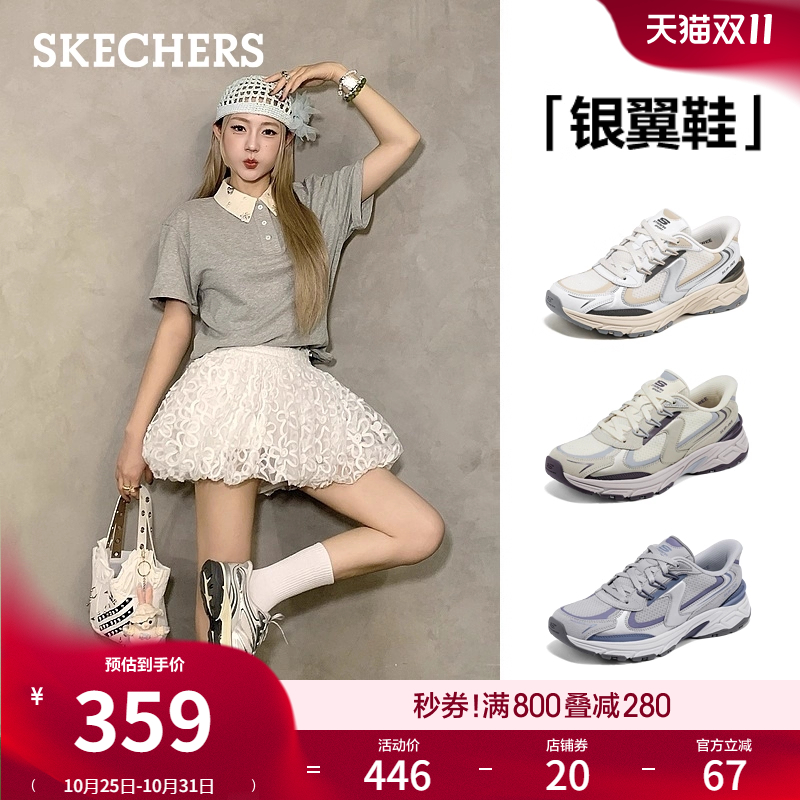 斯凯奇熊猫鞋秋冬季新款女鞋厚底增高休闲鞋银色老爹鞋时尚运动鞋