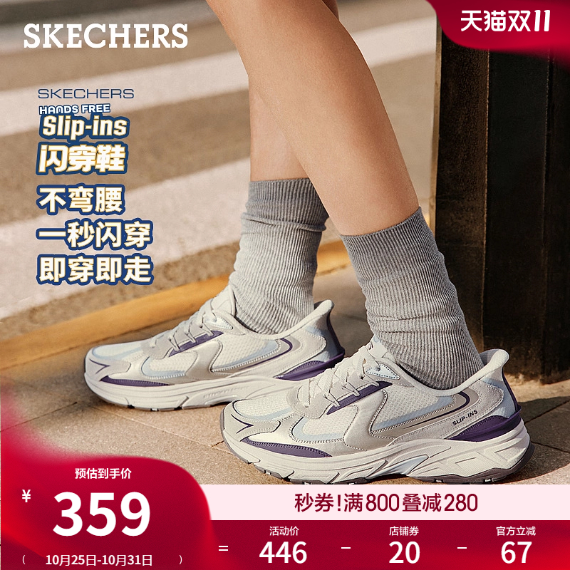 斯凯奇银翼鞋|闪穿鞋2025新款女时尚老爹鞋增高一脚蹬休闲运动鞋