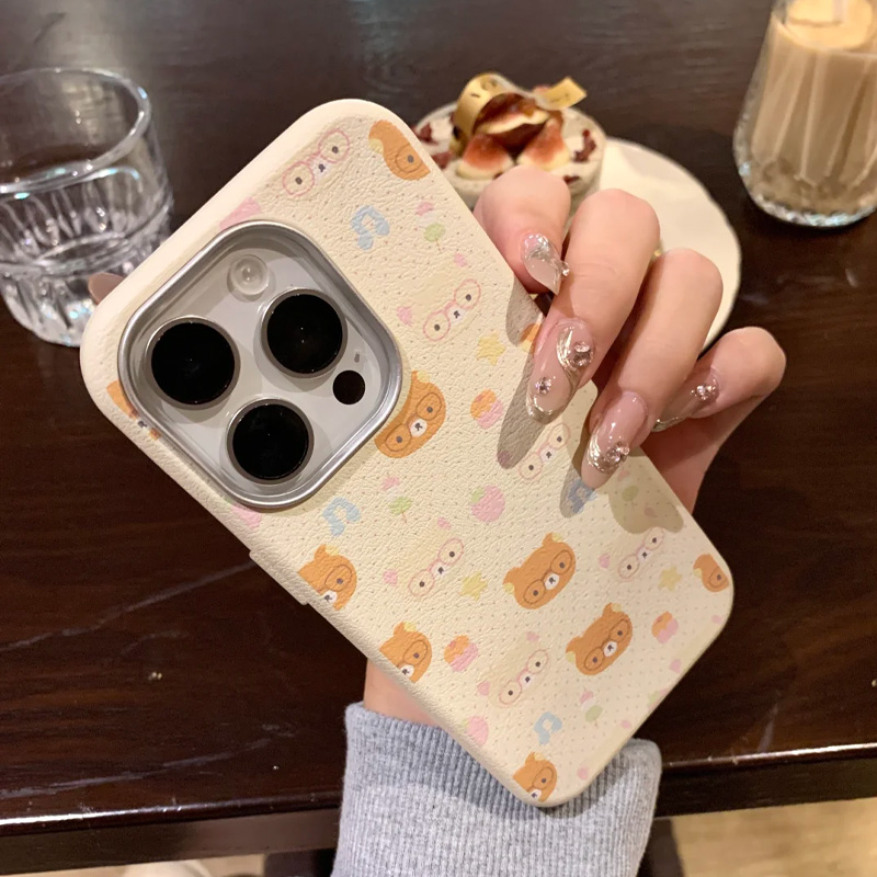 小波点轻松熊适用于iphone16plus手机壳15promax防摔14/13pro新款12/11苹果xsmax软皮纹xs/xr金属镜框保护套