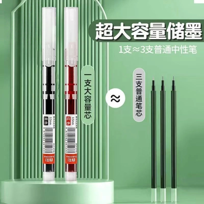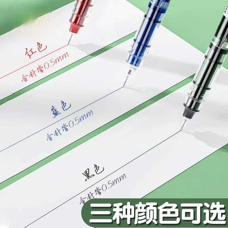 直液式中性笔走珠笔速干水性黑笔中小学生考试刷题笔圆珠笔水笔芯0.5针管头大容量签字笔红色蓝色顺滑三色