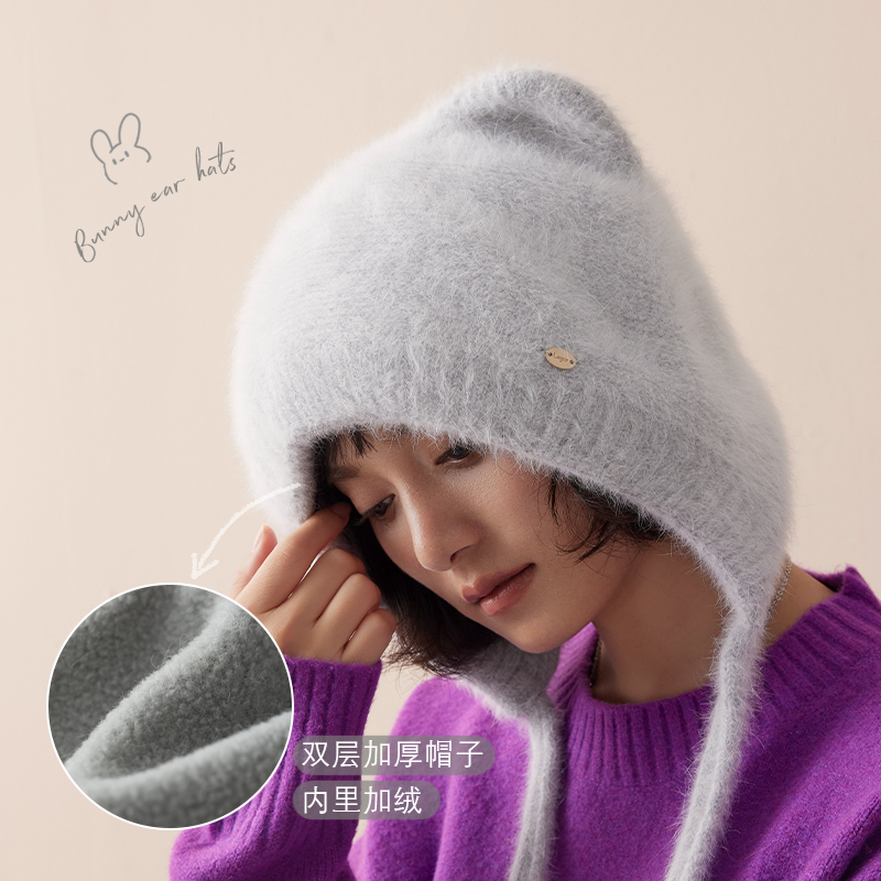 超萌感兔绒绒~lagur㊣内加绒保暖帽子猫耳朵毛线帽可爱百搭针织帽