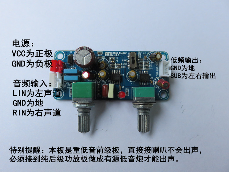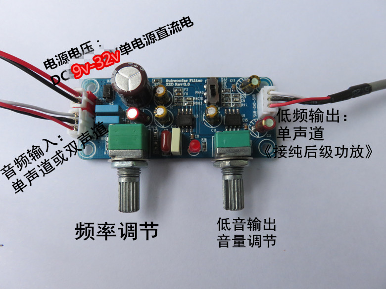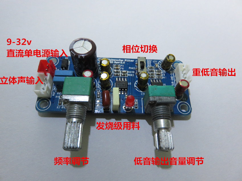 直流单电源9v-32v 低通滤波板 低音炮前级板 带放大和相位调整