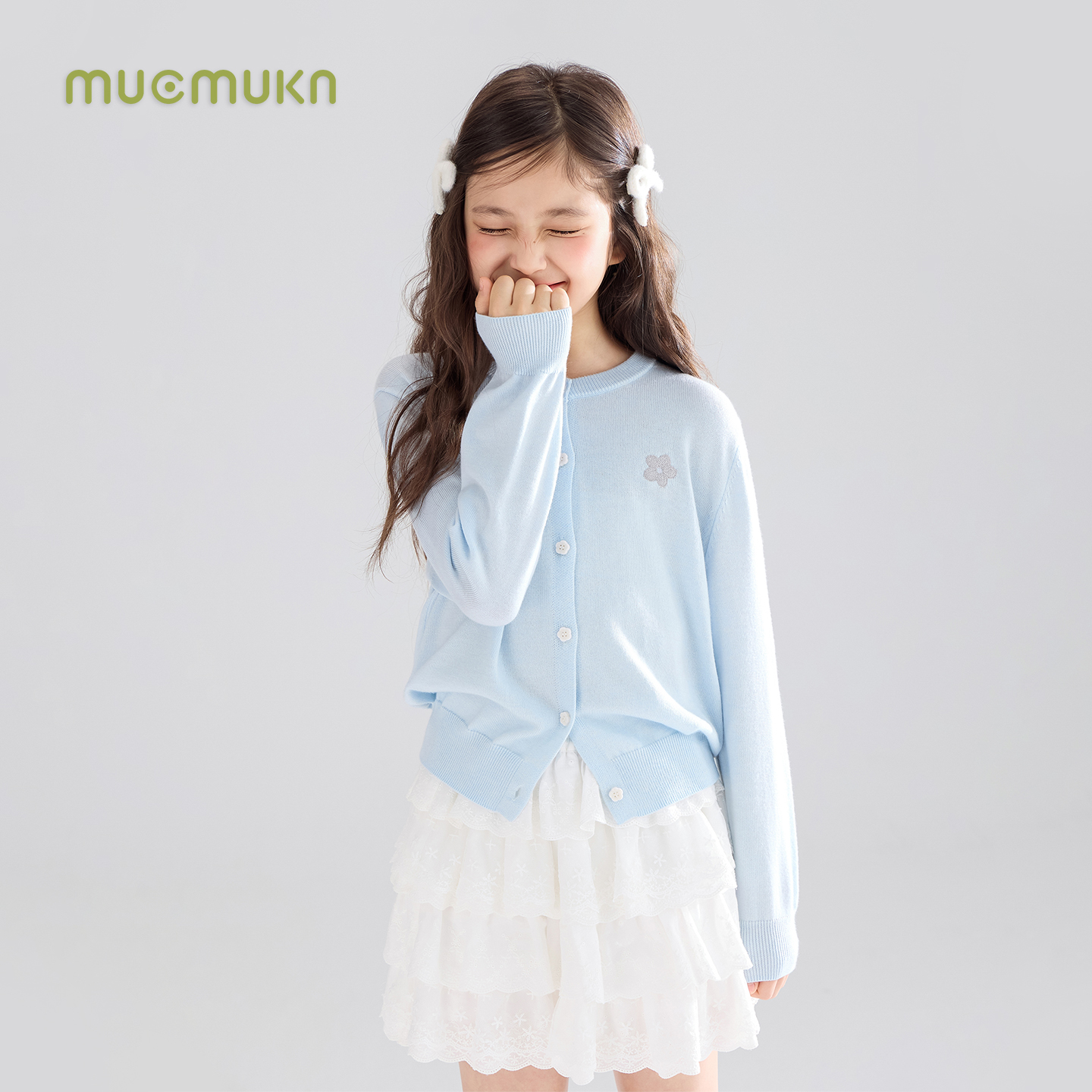 【温柔花园】美利奴羊毛混纺 baby蓝花朵针织开衫毛衣女童秋新款