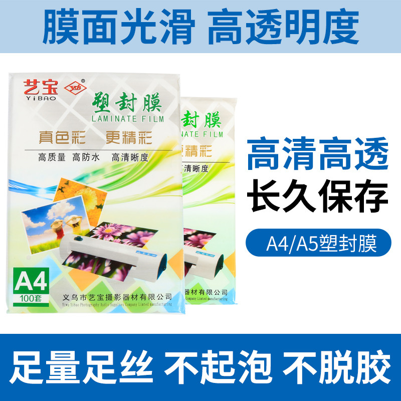 艺宝塑封膜A4过塑膜3寸4寸5寸6寸7寸8寸10寸A5相片过胶纸A3 8丝8C