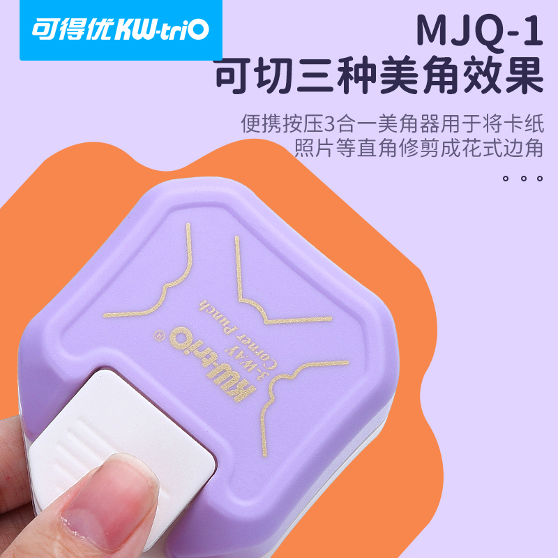 可得优花式美角平角器多角度边角安静书童三合一贺卡相片裁纸机安全压花分类讲义考研倒角活页照片mjq-1