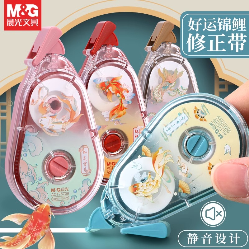 晨光锦鲤乘运而来静音修正带学生用大容量修正带小学生专用涂改带修正带初中生专用改正带修正带大容量修正带