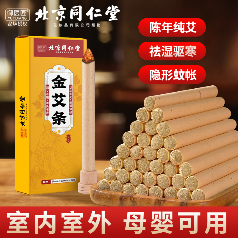 北京同仁堂五年陈艾条棒艾灸柱纯艾绒艾草艾叶艾柱熏肚子中医家用