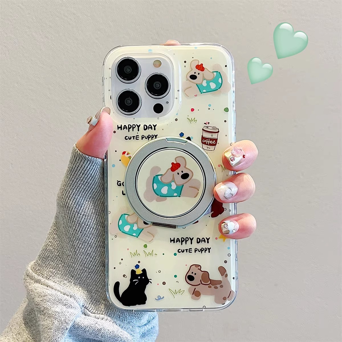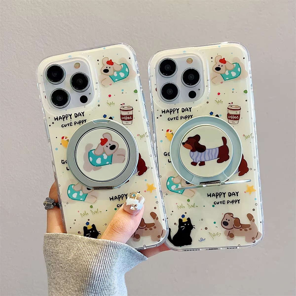 ins风趣味卡通腊肠狗非一体旋转支架适用苹果16promax手机壳iphone15plus新款14pro情侣硬壳防摔11双层保护套
