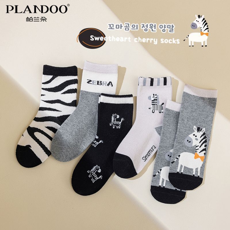 帕兰朵儿童春秋季新款棉质男女童黑白斑马可爱卡通舒适透气中筒袜