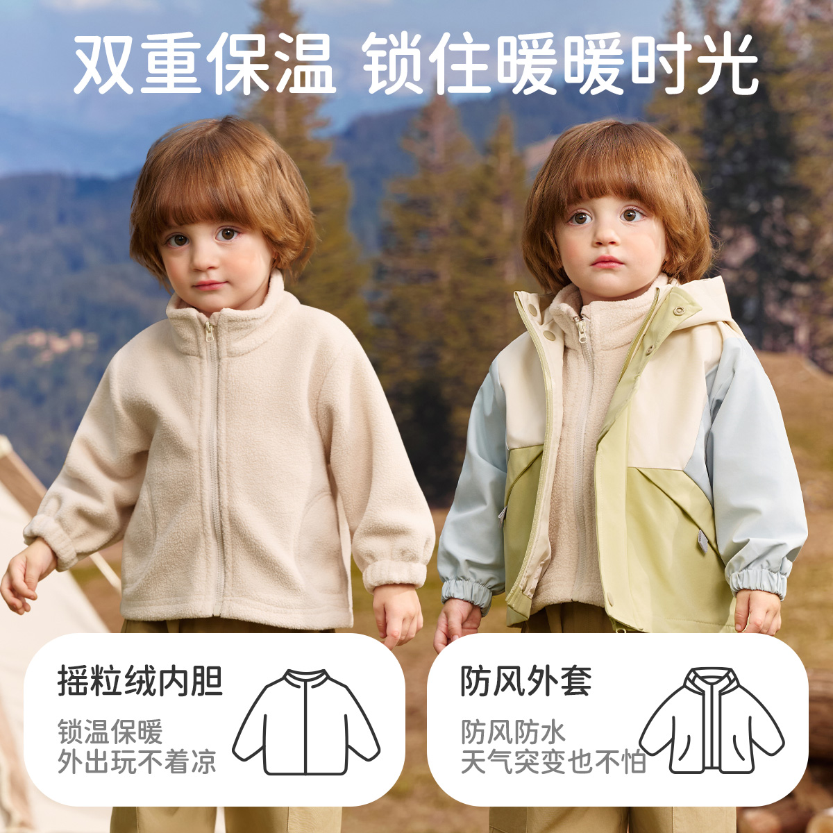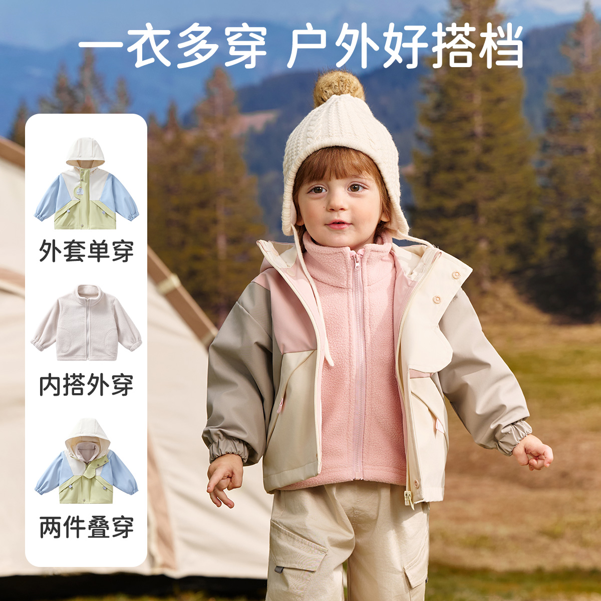 婧麒儿童三防冲锋衣三合一保暖防水连帽上衣宝宝外套男女童秋冬装