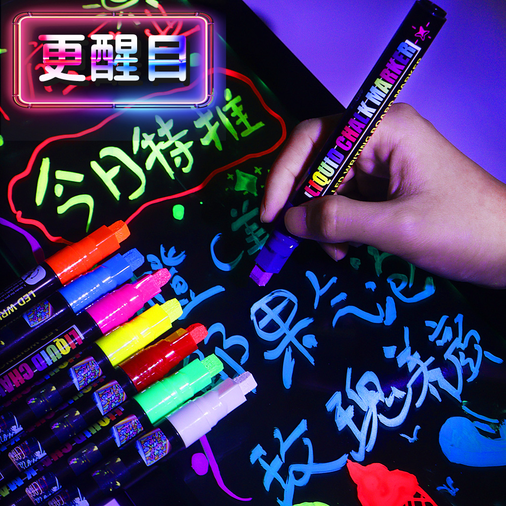 荧光板专用笔玻璃笔可擦白板笔荧光小黑板广告牌碧水笔可擦彩色记号笔LED电子发光POP粗学生用银光大容量夜光