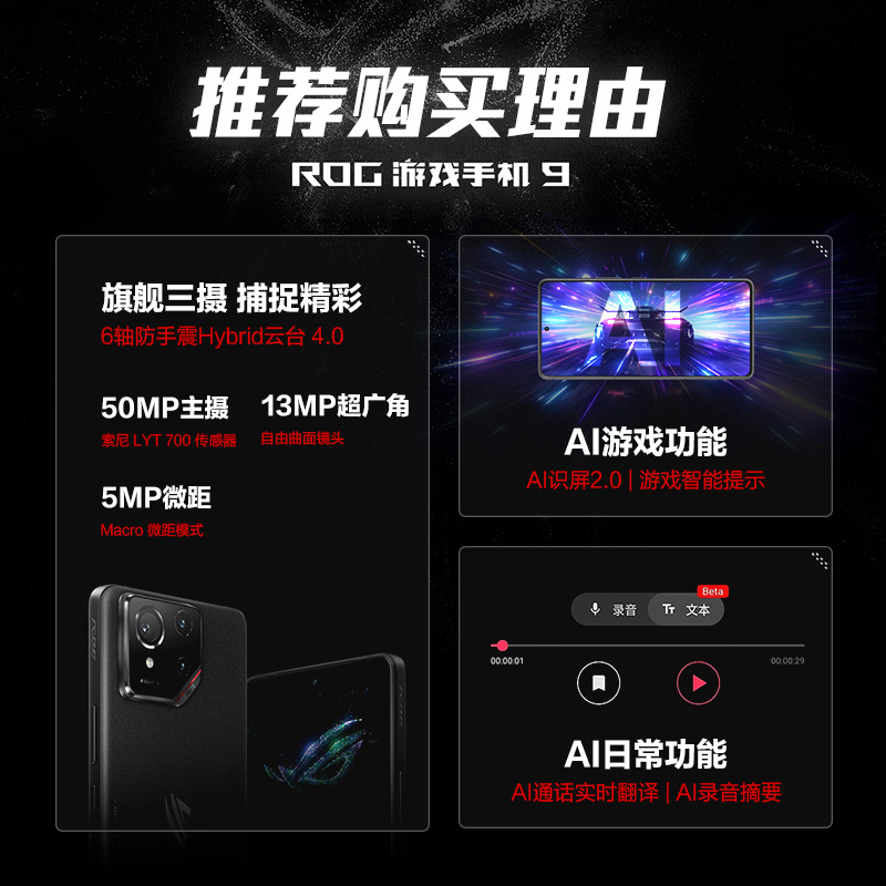 顺丰当天发 ROG9游戏手机9华硕骁龙9Pro 5G全网通AI智能败家之眼玩家国度电竞旗舰官方正品