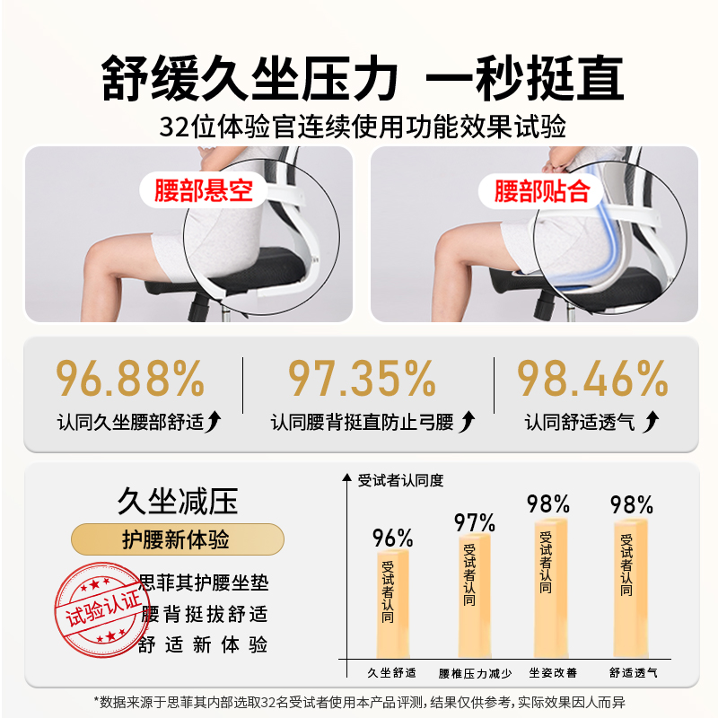 思菲其护腰坐垫久坐神器不累腰部支撑靠垫人体工学坐姿椅靠垫腰椎