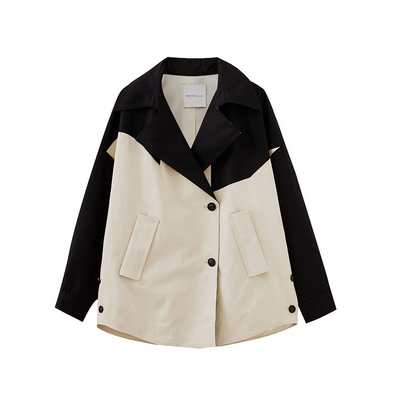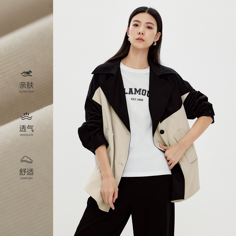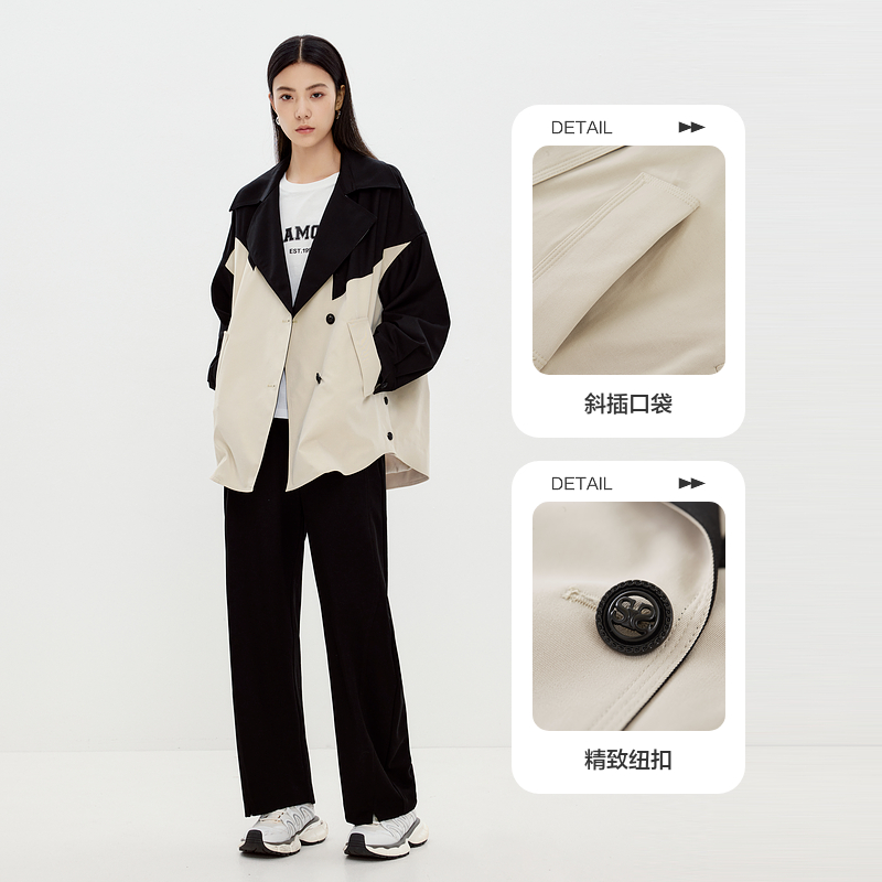 水云间撞色大翻领廓形风衣女休闲外套意法风宽松上衣2025秋冬新款