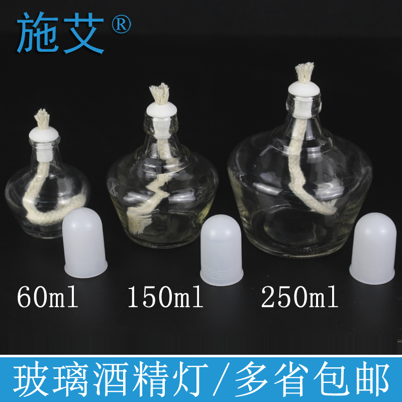 [施艾科教]加厚玻璃酒精灯60/150/250ml初中化学生物实验室教学仪器消毒拔火罐煮茶煮咖啡含灯芯多省包邮