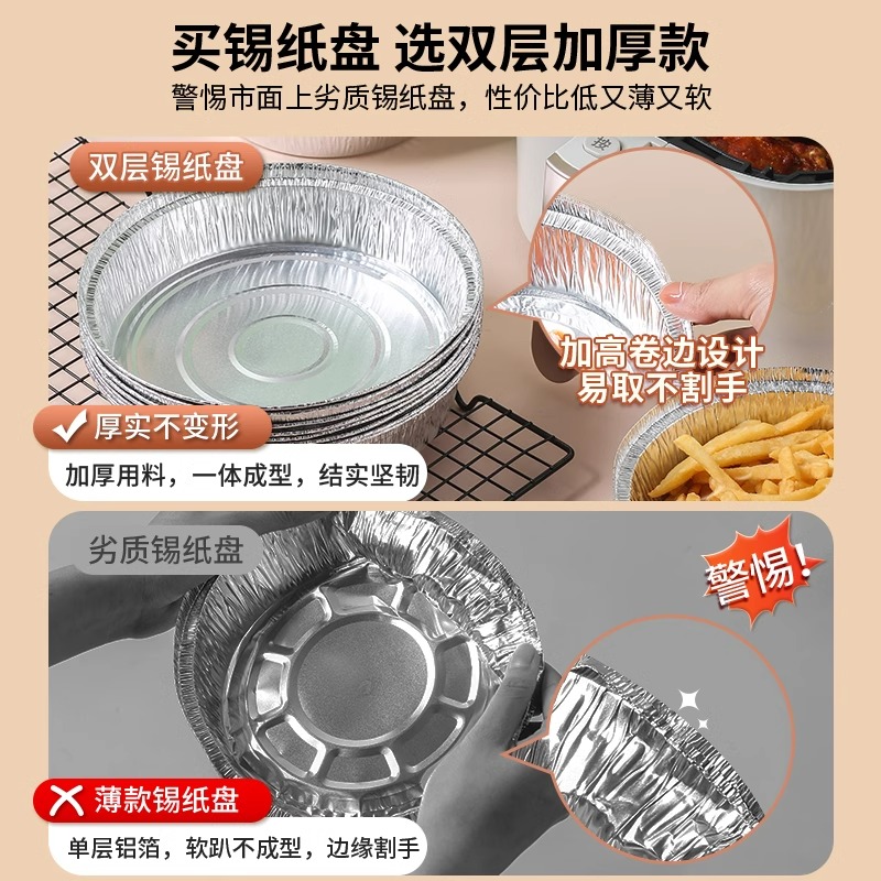 空气炸锅专用纸锡纸盘烧烤箱烘焙锡箔碗家用锡纸盒食品级纸碗圆形